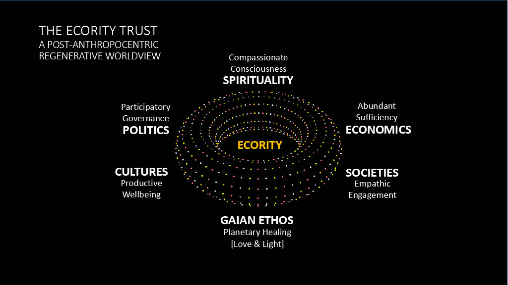 At its core, ecority challenges the anthropocentric and exploitative mindsets that have defined modernity, advocating instead for a worldview that values regeneration. It calls for governance systems that prioritize long-term well-being over short-term gains, economies that operate within the planet’s ecological limits, and societies that measure success by the health and happiness of their members rather than by military might or economic follies. Ecority stresses the importance of beneficial relationships between individuals, communities, nations, and the natural world—and frames loving cooperation as the foundational principle for survival and progress.